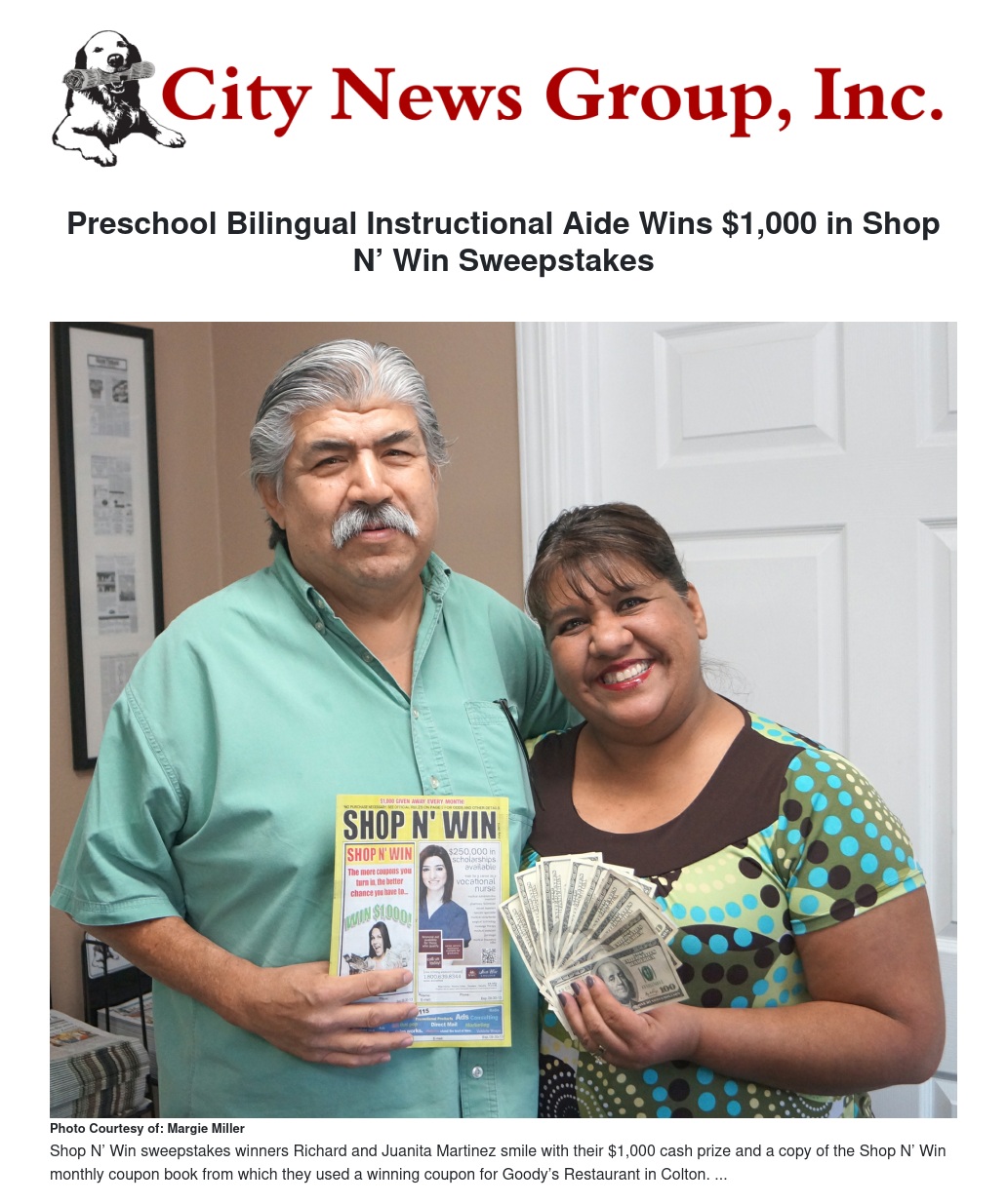 Martinez began using the coupons from the Shop N’ Win monthly coupon book after her brother José picked them up from a local library. He saw there were coupons in the coupon book for restaurants his sister visited, and gave her a stack of Shop N’ Win coupon books to use.
