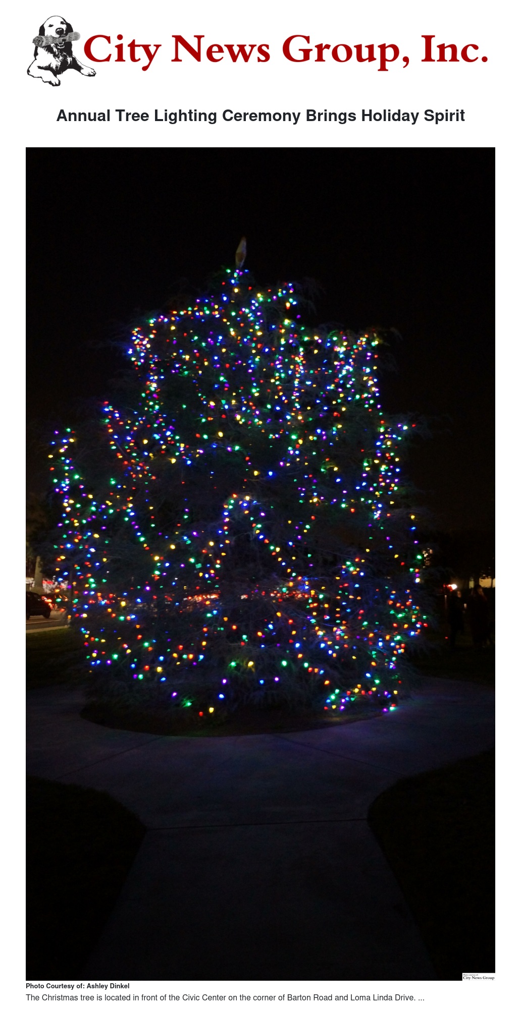 For those who would like to see the tree, it is located in front of the Civic Center on the corner of Barton Road and Loma Linda Drive.