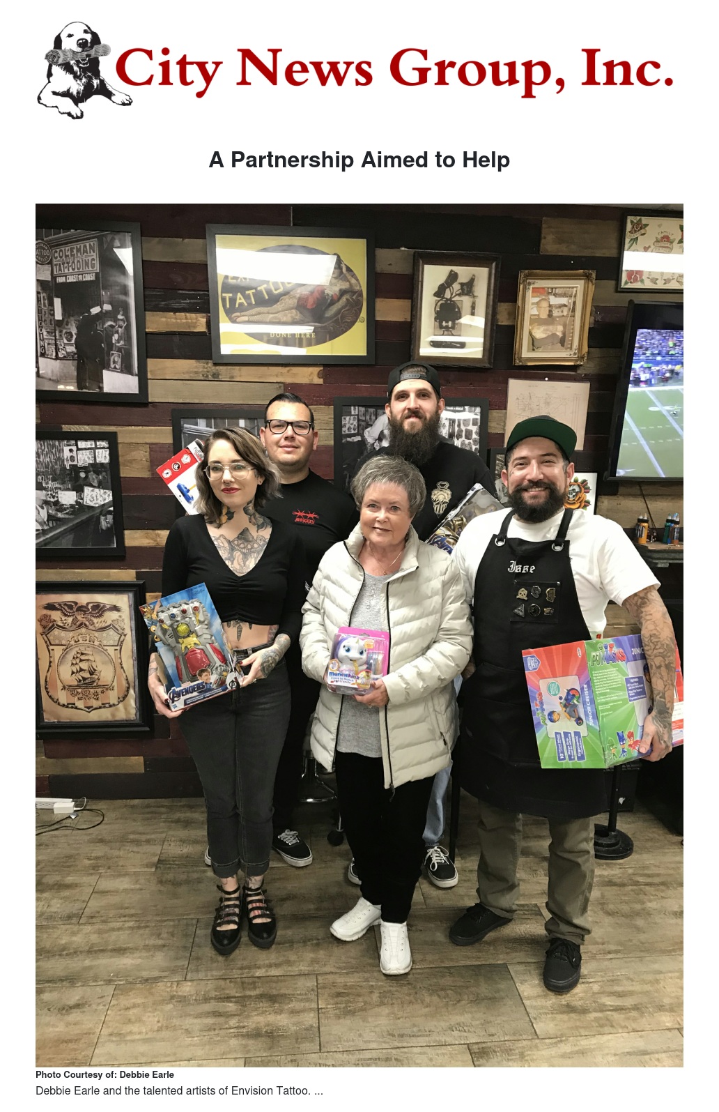 Jacob Doney the owner of Envision Tattoo had his annual Toys for Tats. Along with his amazing crew did some spectacular tattoos, on December 2nd. These talented artists gave their time to help children have a wonderful Christmas. They offered tattoos in exchange for toys, clothing, and canned food items. Partnered with the Grand Terrace Woman’s Club for many years, they have contributed so many toys to our Child Help Program. Thank you Envision Tattoo!