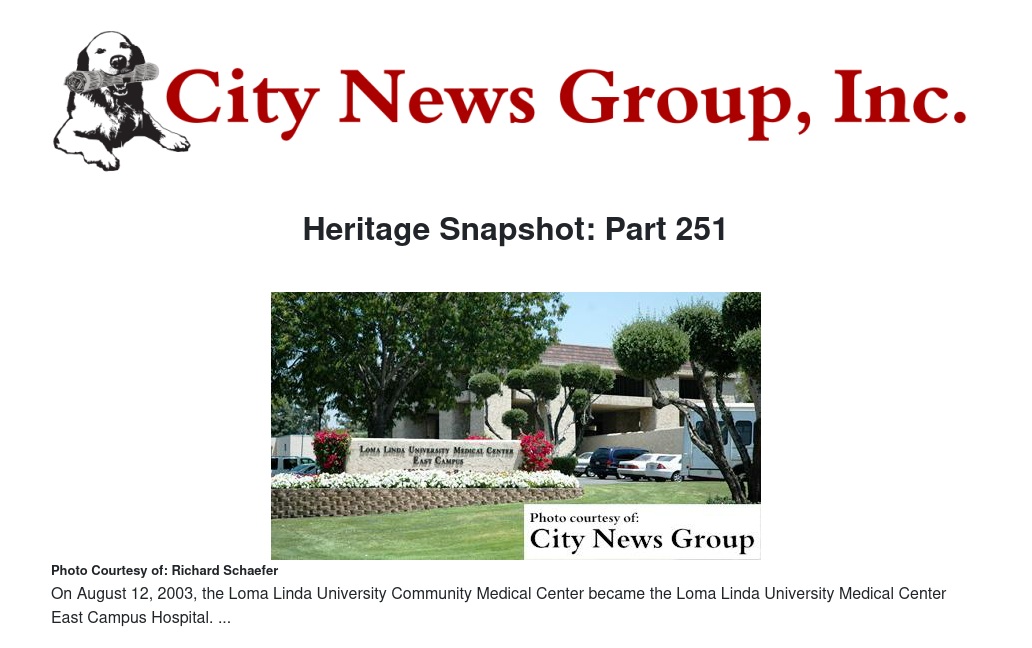 The Loma Linda University Medical Center East Campus complex, sitting on a 20-acre parcel a half mile east of Loma Linda University Medical Center, at that time consisted of the Community Hospital, the Loma Linda University Medical Center Ambulatory Services, and two office buildings now known as the Loma Linda University Medical Center East Campus Professional Plaza.