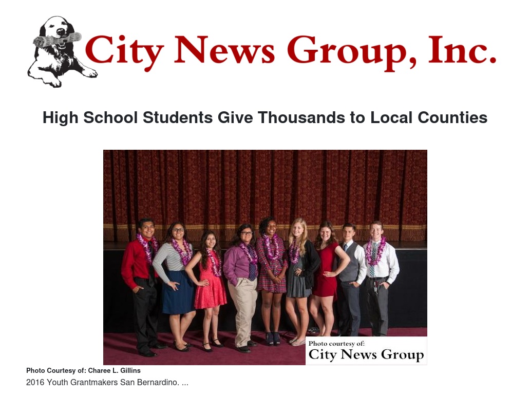 With representatives from 13 high schools in both counties, 35 Youth Grantmakers make up the Riverside and San Bernardino program. Since the inception of this program, Youth Grantmakers have awarded $200,000 to deserving nonprofit agencies.