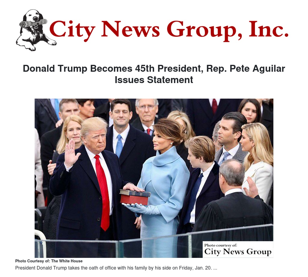 Donald Trump Becomes 45th President, Rep. Pete Aguilar Issues Statement