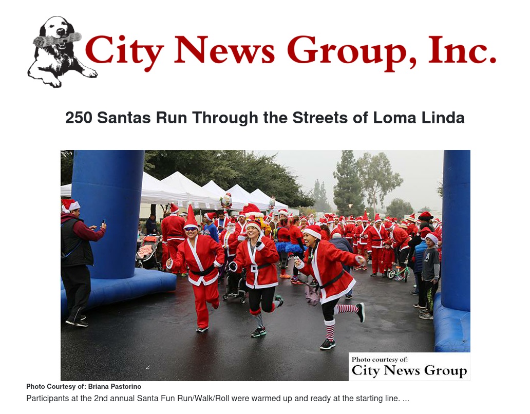 LOMA LINDA>> The weather outside was chilly as 250 Santas of all ages, from toddlers in strollers to seniors, gathered to participate in the 2nd annual Loma Linda University Health 5K Santa Fun Run/Walk/Roll on Sunday, Dec. 11.