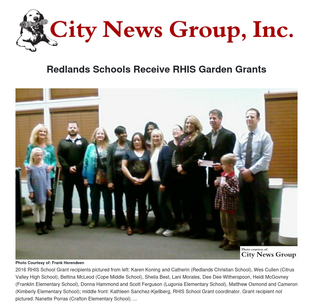 REDLANDS >> One of the many community projects sponsored by Redlands Horticultural and Improvement Society is providing funds to teachers to establish a garden at their school. RHIS believes that the society’s 127 year goal of beautifying Redlands begins with teaching children to appreciate the joys and excitement of being creative in the garden.
