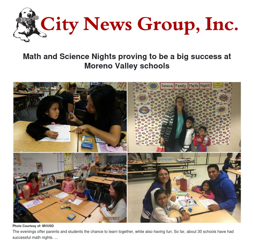 As part of MVUSD’s commitment to increase student achievement, specifically in math, science and reading, each school in the district is holding a Family Math Night and Family Literacy Night.