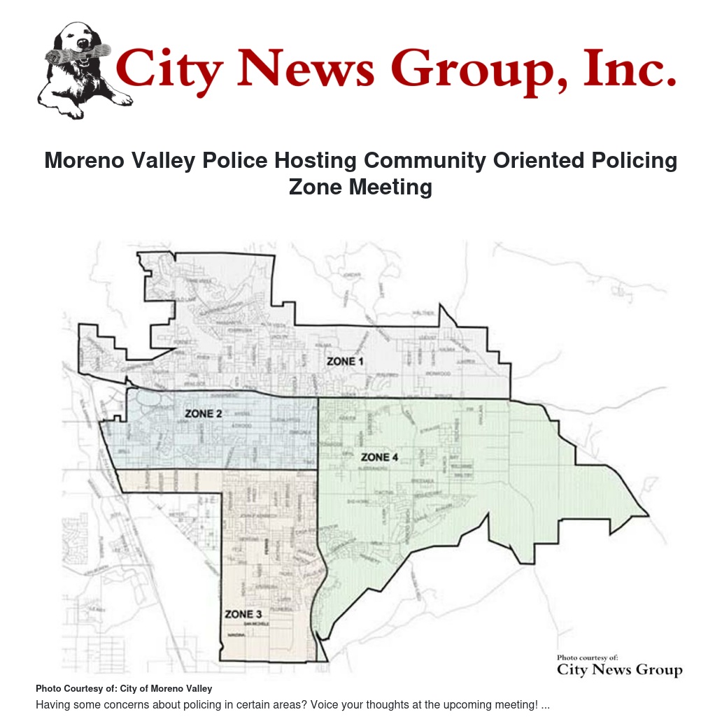 Moreno Valley Police Hosting Community Oriented Policing Zone Meeting