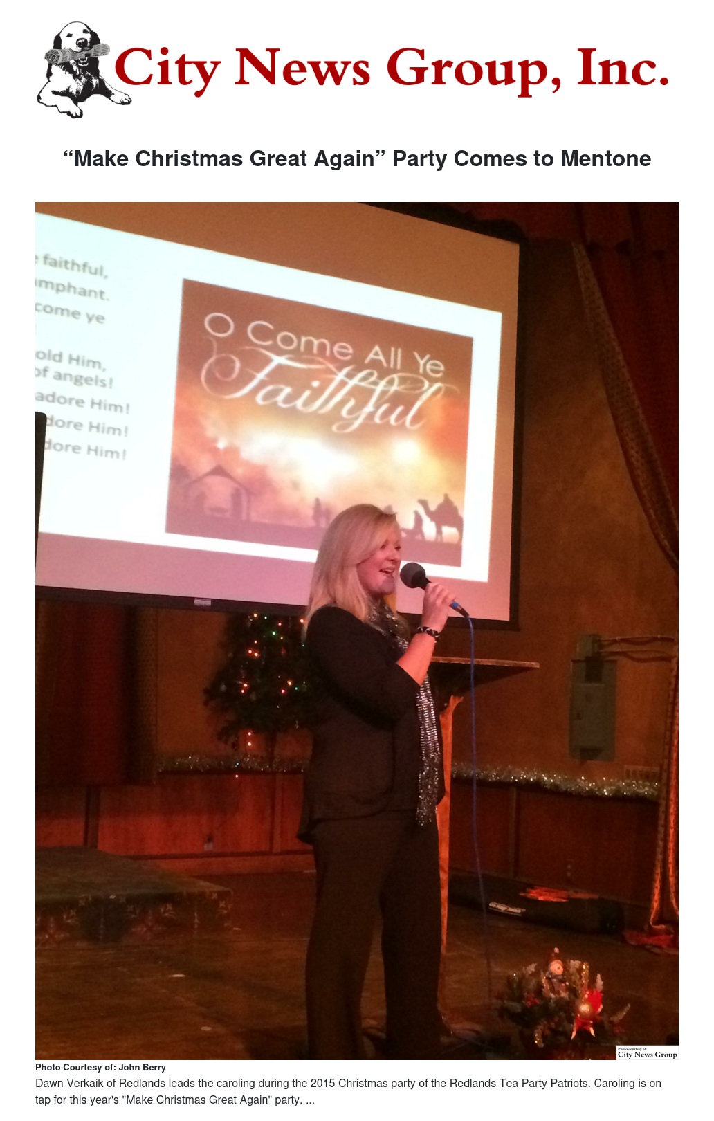REDLANDS>> The self-described “deplorables” who campaigned for President-Elect Donald Trump will gather Thursday, Dec. 15 in Mentone for a “Make Christmas Great Again” party.