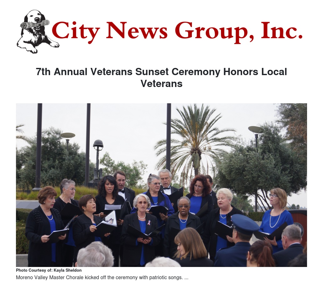 The ceremony started with a musical number by the Moreno Valley Master Chorale, singing patriotic songs.