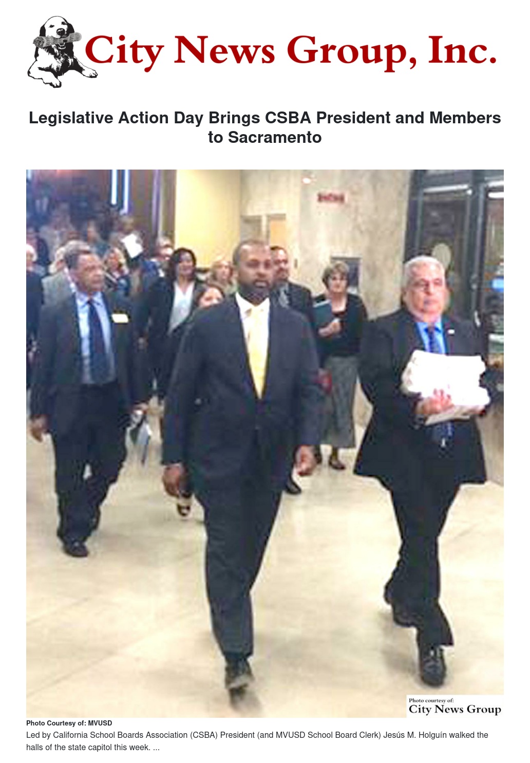 Led by California School Boards Association (CSBA) President (and MVUSD School Board Clerk) Jesús M. Holguín, more than 200 CSBA members from districts large and small walked the halls of the state capitol last week, meeting with their Assembly members and state senators to advocate for public education.