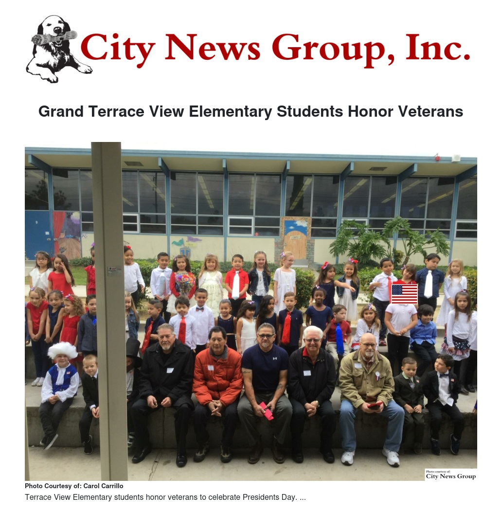 GRAND TERRACE >> Terrace View Elementary kindergarteners celebrated Presidents Day with a Patriotic Performance honoring Grand Terrace veterans on Friday, Feb. 17.