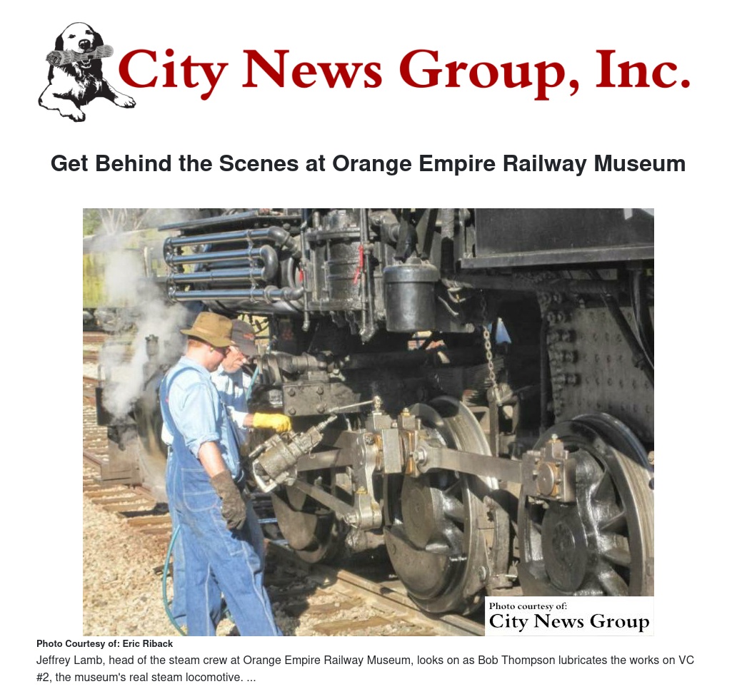 Behind the Scenes coincides with Steam Weekend so you'll see a real steam locomotive in operation and get to ride behind the powerful VC #2. Admission includes unlimited rides on other classic passenger trains and streetcars of Southern California's railroad past.