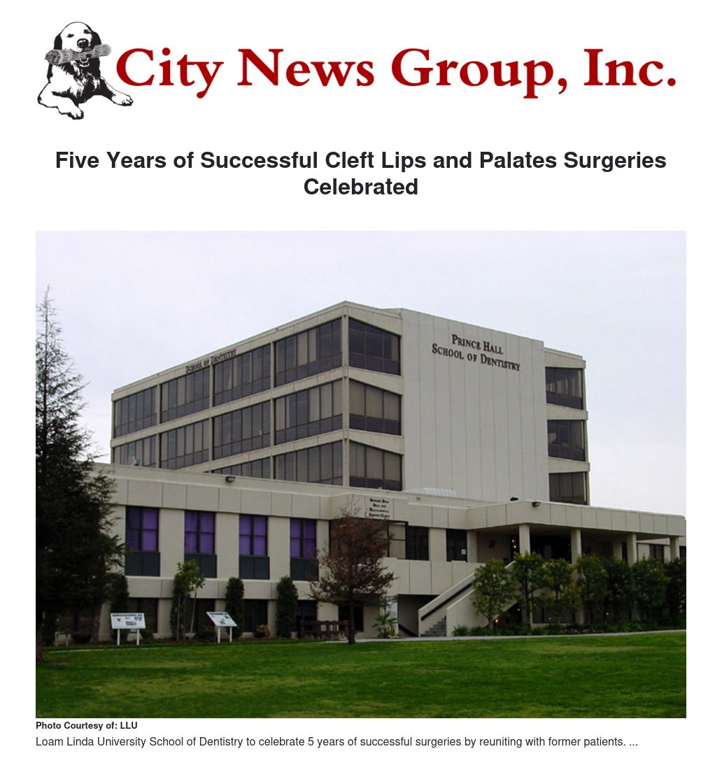 On Oct. 24 LLU School of Dentistry will celebrate five years of cleft lips and palates surgery with a reunion of kids who have undergone the procedure known as Presurgical Nasal Alveolar Molding (PNAM).