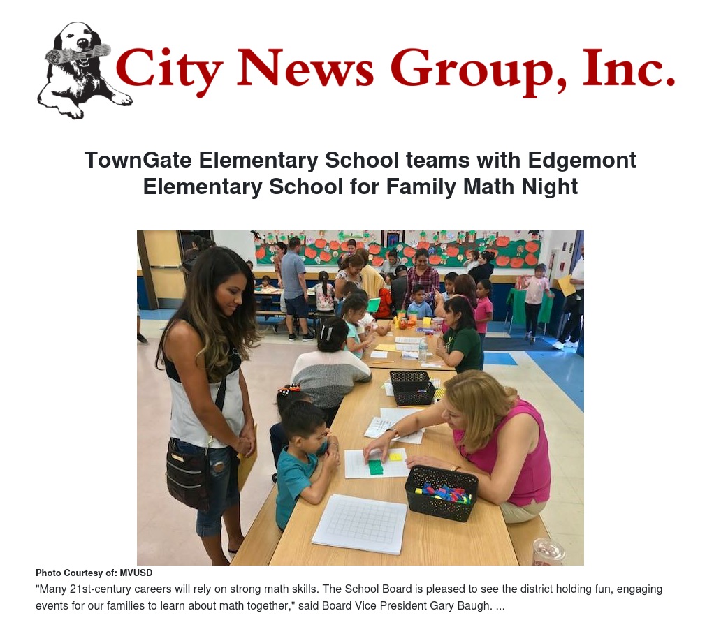 TownGate Elementary School and Edgemont Elementary School teamed up for "Count Me In", a family math night where students, parents, siblings and grandparents joined for an evening of fun with math.