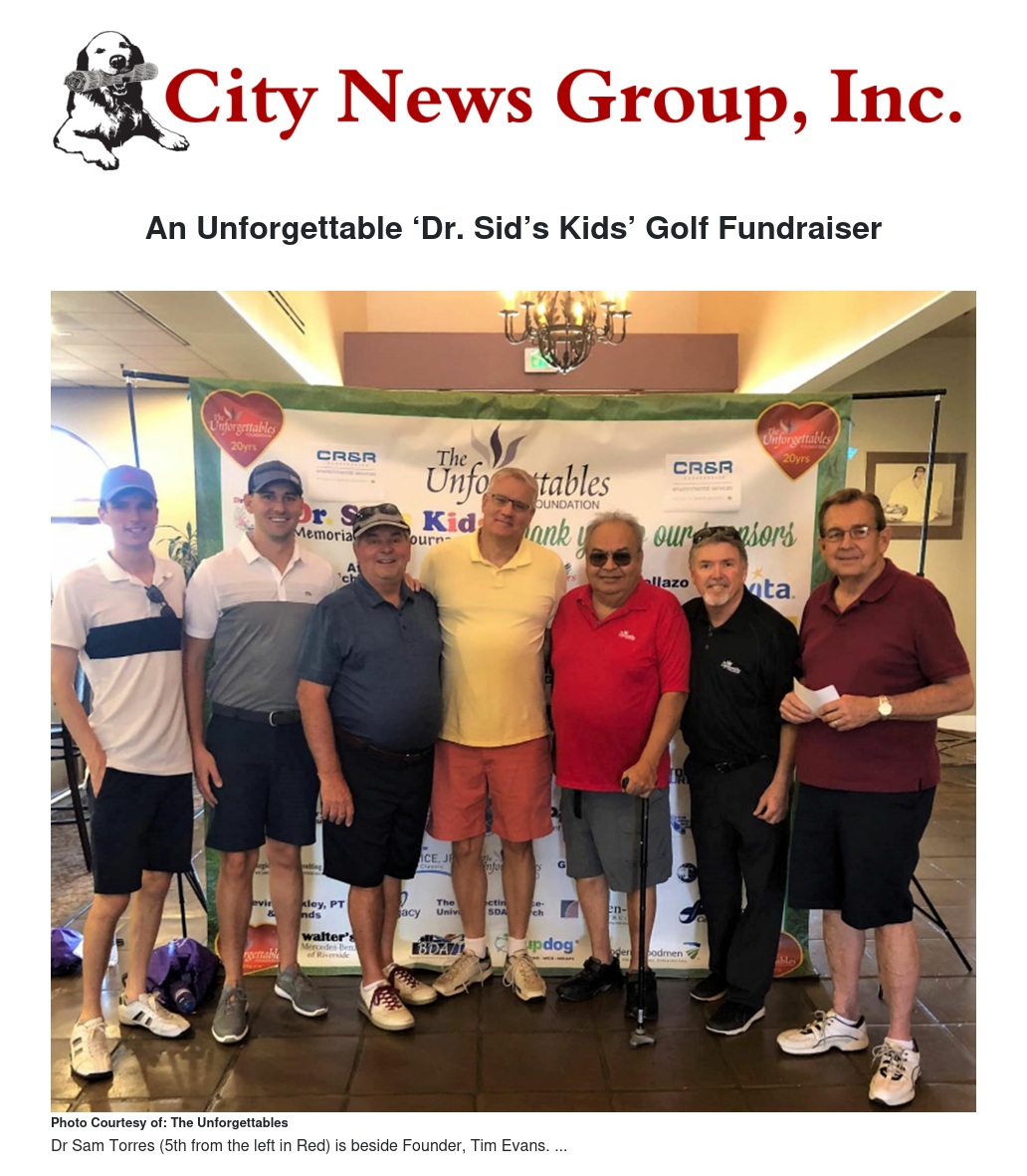 On the second to last Sunday of June, The Unforgettables Foundation 501 ©(3) based in Redlands, presented the 5th Annual Dr. Sid’s Kids Charity Golf Tournament at Tukwet Canyon Golf Course in Beaumont (which is operated by Morongo). Dr Sam Torres, MD an anesthesiologist like his brother, Dr. Sid Torres (who is remembered and memorialized at this event for his care of children across the Inland Empire and service on The Unforgettables Board) was present to welcome the 124 players. Sam is semi-retired from Loma Linda University Medical Center.