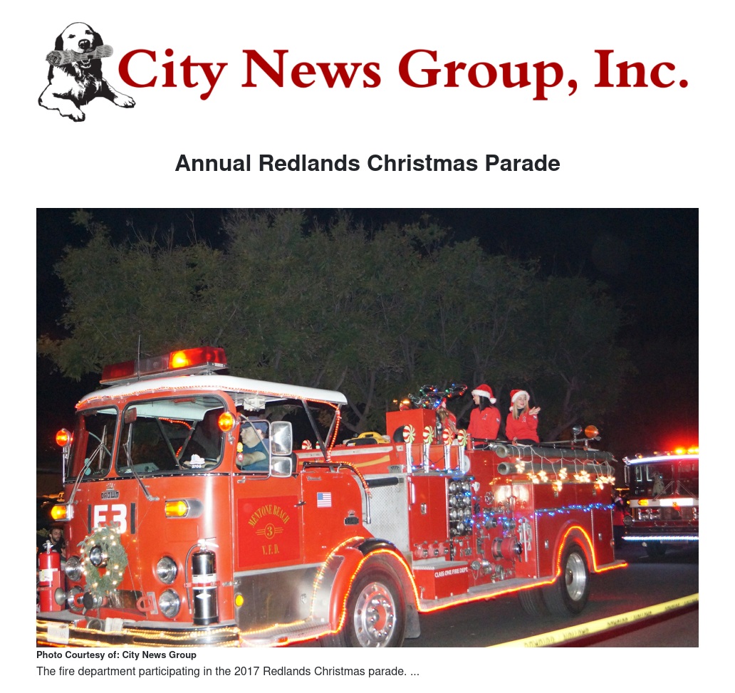 Those unable to attend the parade in person can view the festivities live on channels 3 and 35. To learn more, go to www.redlands-events.com/XMAS.htm or call Nelson at 909-533-1357.