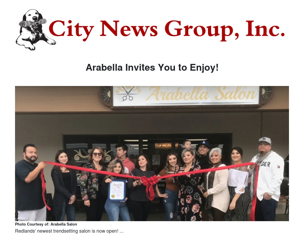 Arabella Salon is proud to announce that Redlands residents have a new style hot spot to choose from and make their own. The salon offers cuts, styles, highlights, Brazilian blow-outs, updo's, extensions, and styling for any and all special occasions. More than just hair services they also offer facials, waxing, special occasion make-up and beautiful eyelash extensions. Arabella Salon is open for business and is gladly accepting walk-in's or appointments. The salon welcomes men, women, and children of all ages.
