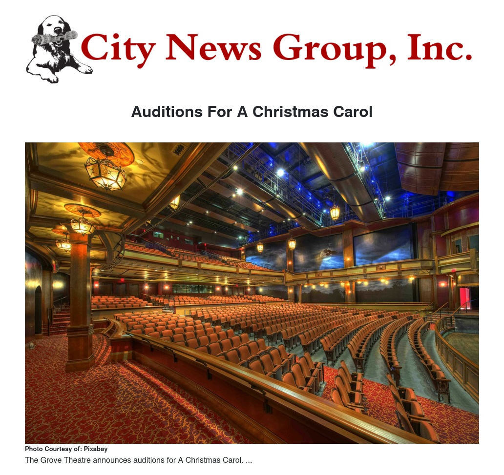 The Grove Theatre announces open auditions for its upcoming production of A Christmas Carol.