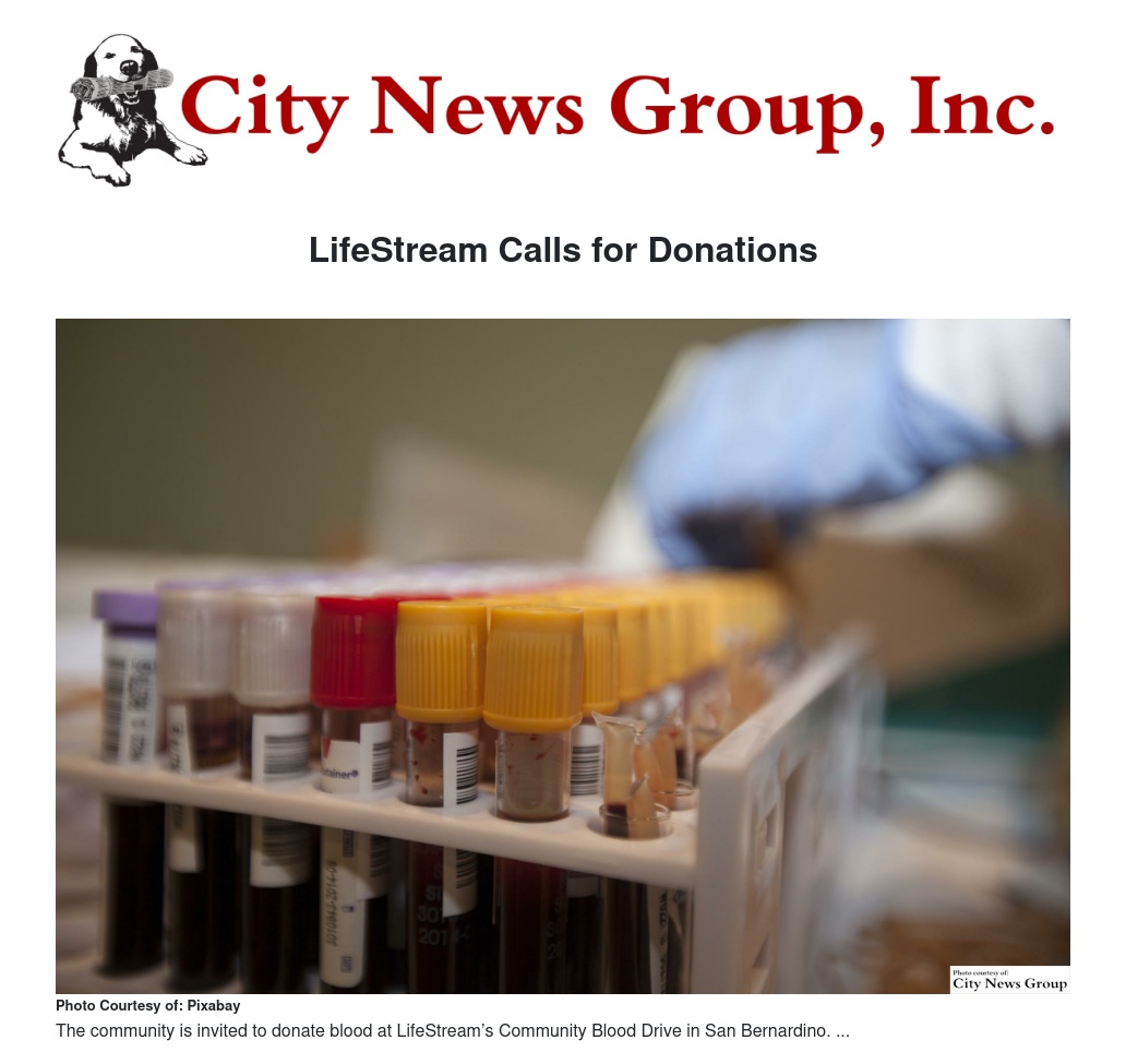 The LifeStream website states, "Based on the need for a readily available blood supply, LifeStream was established by the medical societies of San Bernardino and Riverside counties and has been helping to save lives by connecting donors and patients through the gift of blood since June 19, 1951."