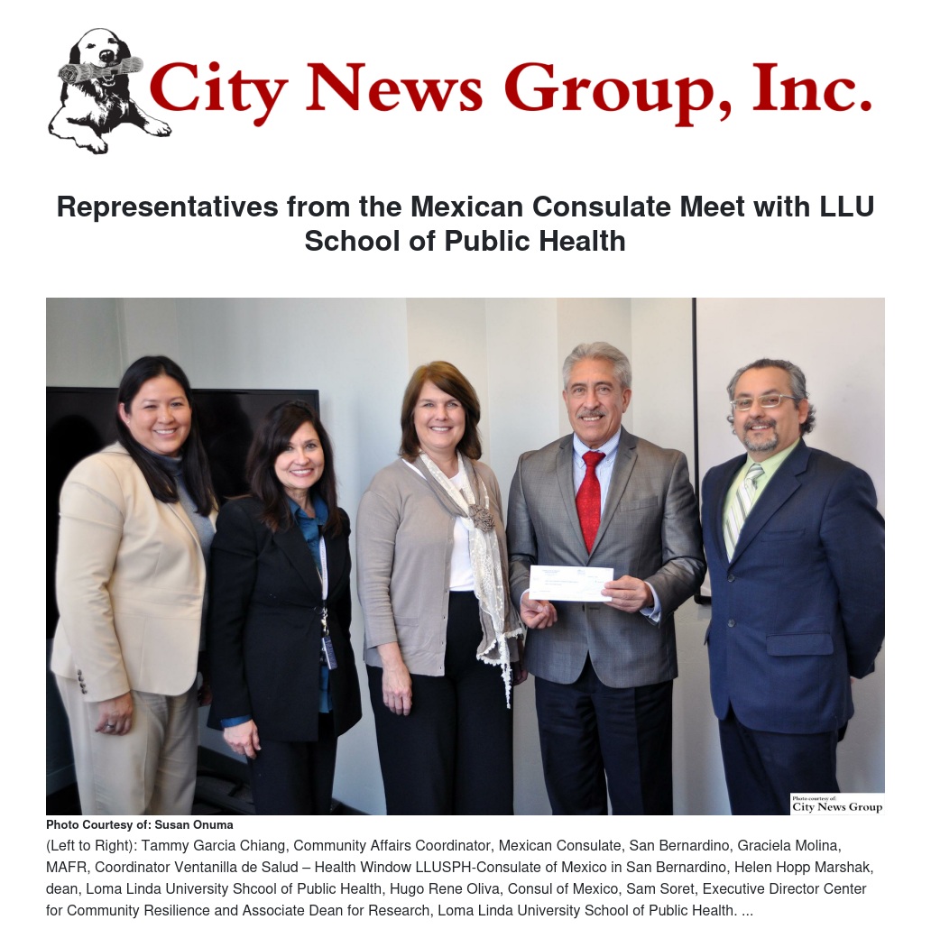 Representatives from the Mexican consulate in San Bernardino met with Loma Linda University School of Public Health dean, Helen Hopp Marshak, and Sam Soret, Executive Director Center for Community Resilience and Associate Dean for Research, on Tuesday afternoon, Feb. 2.