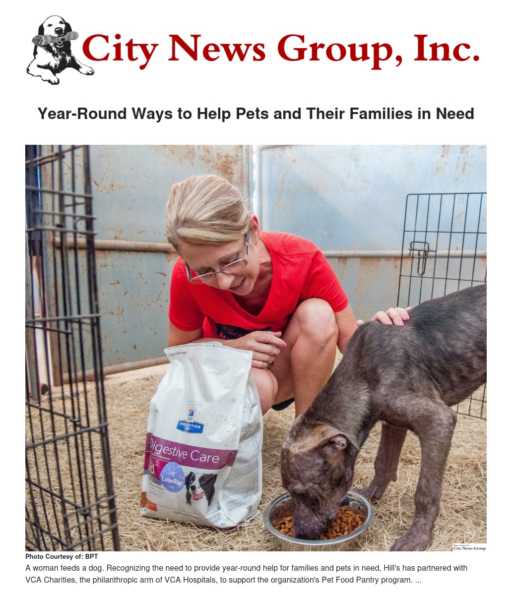 * Contact your veterinary clinic or others in your area to see if they have programs in place to provide free or reduced-cost medical care to pets in need. You may be able to donate cash or supplies, or simply volunteer your time. "When families are struggling with food insecurity, homelessness, financial hardship or transition, they need the unconditional love of their pets more than ever," Fuller said. "By helping provide for pets, you're also doing something good for the humans who love them - and that's something you can feel good about all year long."