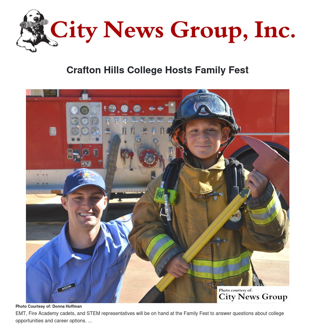 To encourage parents to start thinking about college and career before their child enters high school, Crafton Hills College is hosting an open house, “Come to College” Family Fest, on Saturday, Nov. 7 from 10 a.m. to 1 p.m.