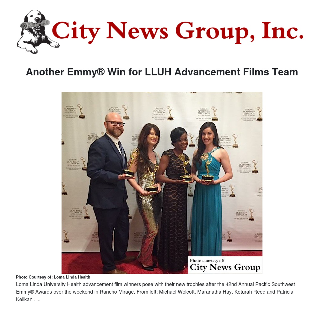 LOMA LINDA >> Loma Linda University Health advancement films earned, once again, the highest honor in the television industry — the Emmy®. The National Academy of Television Arts and Sciences awarded “Life on the Line” its first Emmy® Award in the category of health and science program at the 42nd Annual Pacific Southwest Emmy Awards in Rancho Mirage.