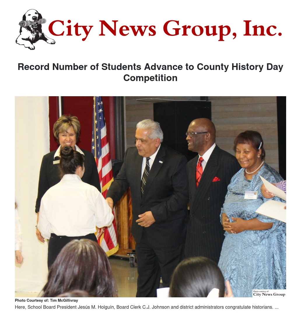 Record Number of Students Advance to County History Day Competition