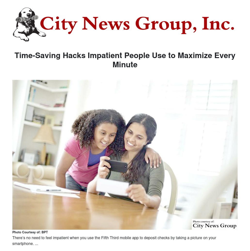 Driving, waiting in line, filling out forms - daily banking can be time-consuming. Instead, look for a bank that simplifies frequent banking activities. For example, the new Fifth Third mobile app eliminates unnecessary steps to help you save time. Have a check to deposit? With the App, Tap, Deposit feature, just take a photo of a check to be deposited. Need to check your balance? The Now Balance feature lets you check your balances without signing in simply by swiping to the left on the login screen.
