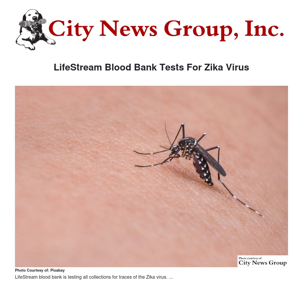 If a potential donor declines to have his/her blood tested for Zika, he/she will not be able to give blood. While LifeStream recognizes the right of donors to make this choice, Chaffin said making blood donation contingent on Zika testing helps ensure the continued safety of the local blood supply and is in compliance with FDA guidance.