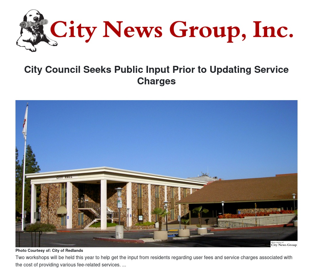 REDLANDS>>The City of Redlands will hold two public workshops to provide information and seek public input prior to the city council’s review of updated user fees and service charges associated with the cost of providing various fee-related services.