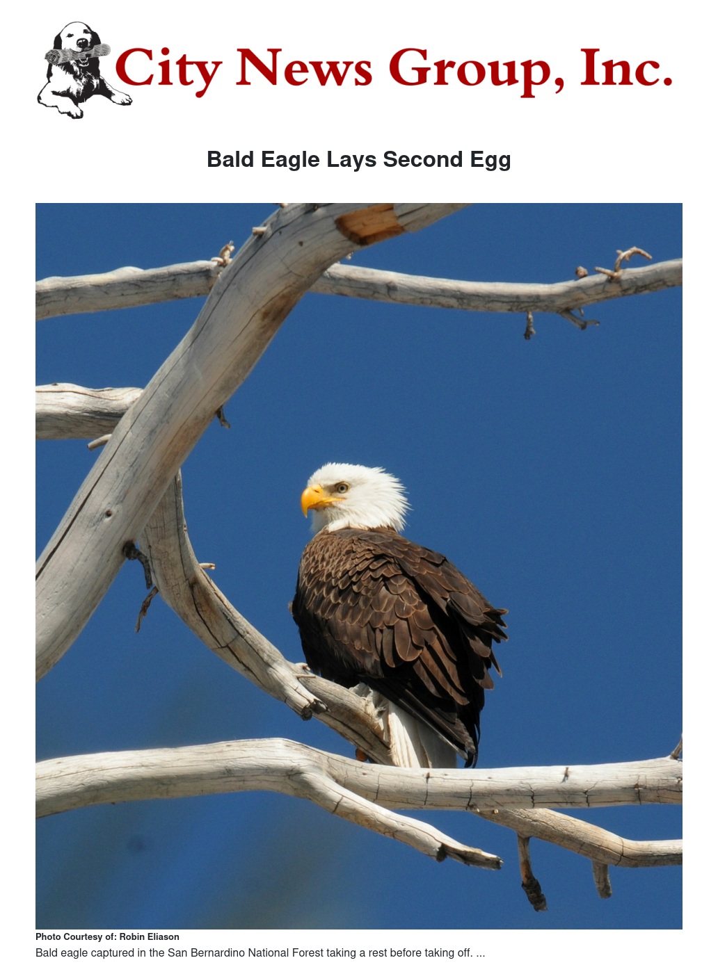After more than 125 people fanned out across Southern California’s Inland Empire to participate in the last public bald eagle count of the season, a bald eagle in Big Bear laid a second egg at a nest where a live webcam is placed. It was laid at approximately 5:25 p.m. The first egg was laid on Wednesday, March 6.