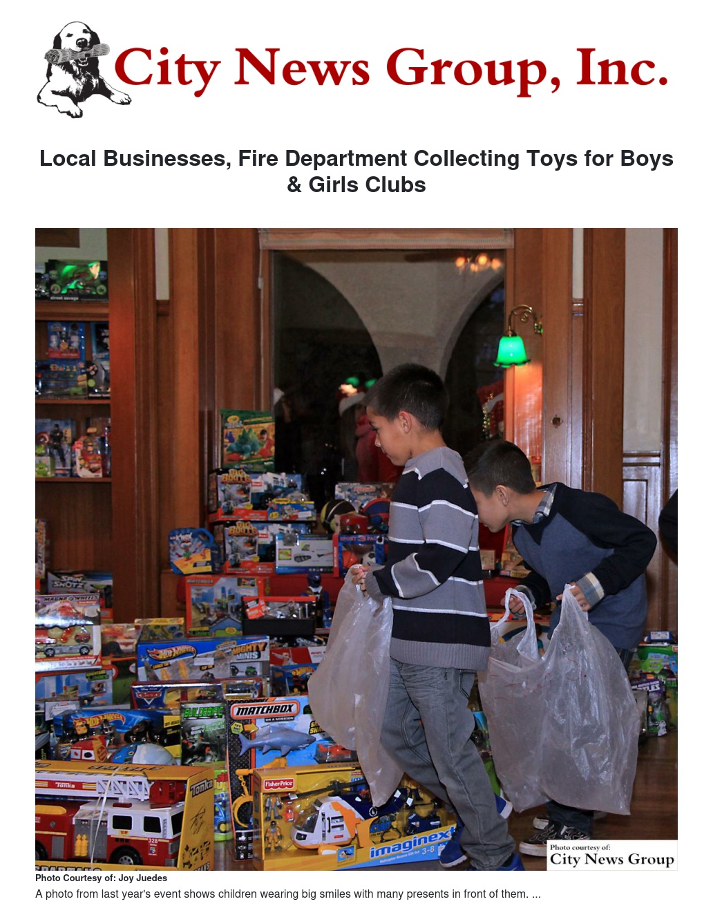 Local Businesses, Fire Department Collecting Toys for Boys & Girls Clubs