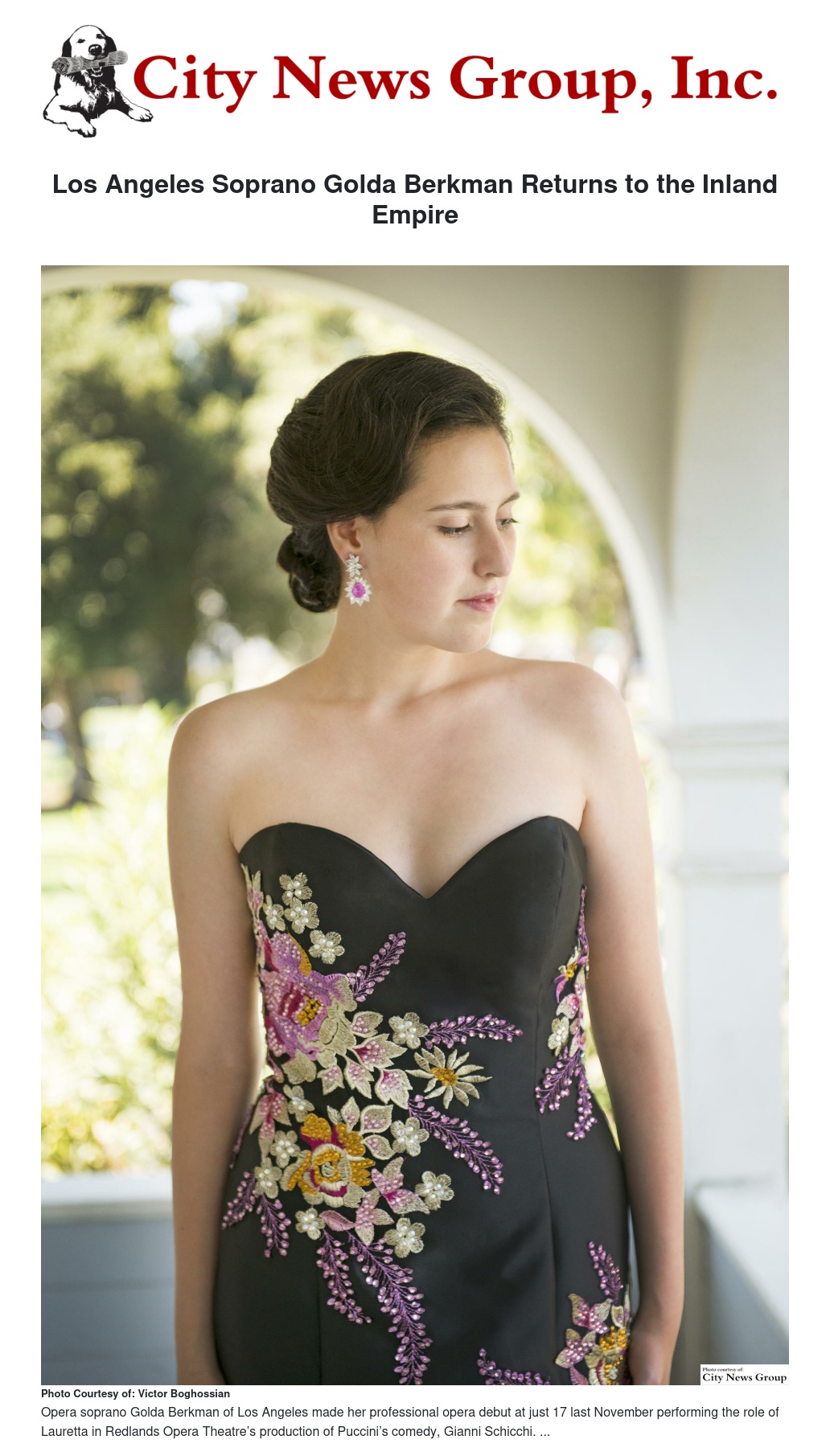 REDLANDS>> Young opera soprano Golda Berkman of Los Angeles will be guest artist at Coachella Valley Symphony’s “Opera to Broadway – A Musical Spectacular!” on Sunday, March 5.