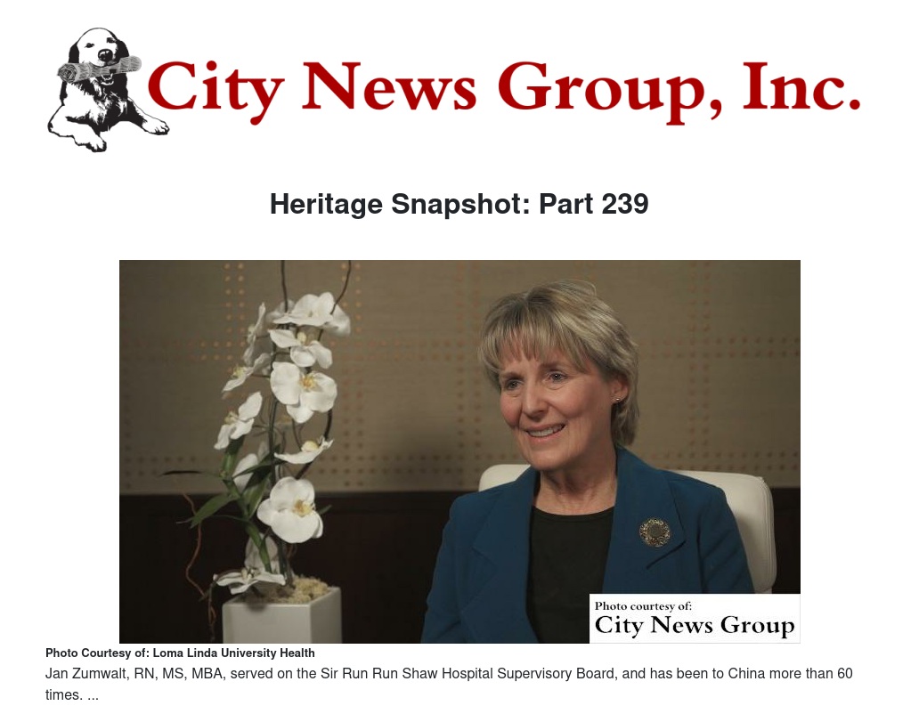 LOMA LINDA>> In the beginning, Jan Zumwalt, executive director medical/surgical nursing, Loma Linda University Medical Center, served as The China Project’s nursing liaison. She is now the Executive Director, International Affairs, for LLUMC and Associate Director of the Global Health Institute for Loma Linda University Health. Loma Linda University’s School of Allied Health Professions sent a team to SRRSH to train Chinese physicians and nurses in advanced cardiac life-support techniques. Its School of Nursing held several continuing education courses for SRRSH nursing staff and other nurses in the city of Hangzhou.