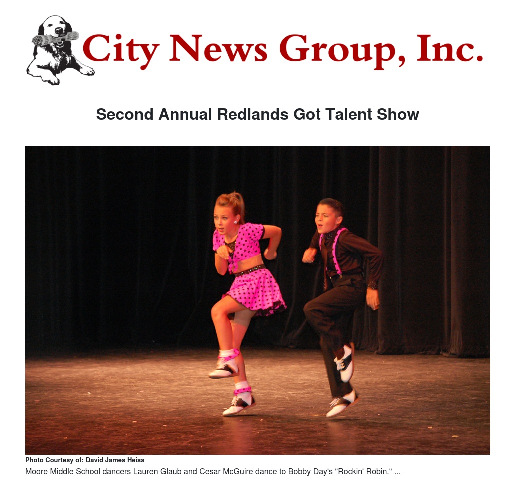 Two students from Moore Middle School juke jived their way to first place at the fourth annual Redlands Got Talent show on Nov. 15, with a show choreographed to Bobby Day’s “Rockin’ Robin.”