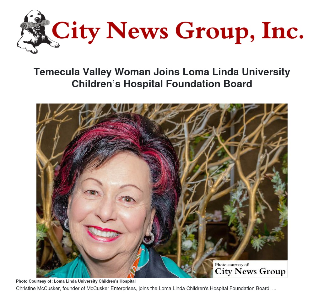 LOMA LINDA>> Loma Linda University Children’s Hospital (LLUCH) has recently announced Christine McCusker, a long time educator and non-profit supporter in the Temecula Valley, as the newest member of the LLUCH Foundation Board.
