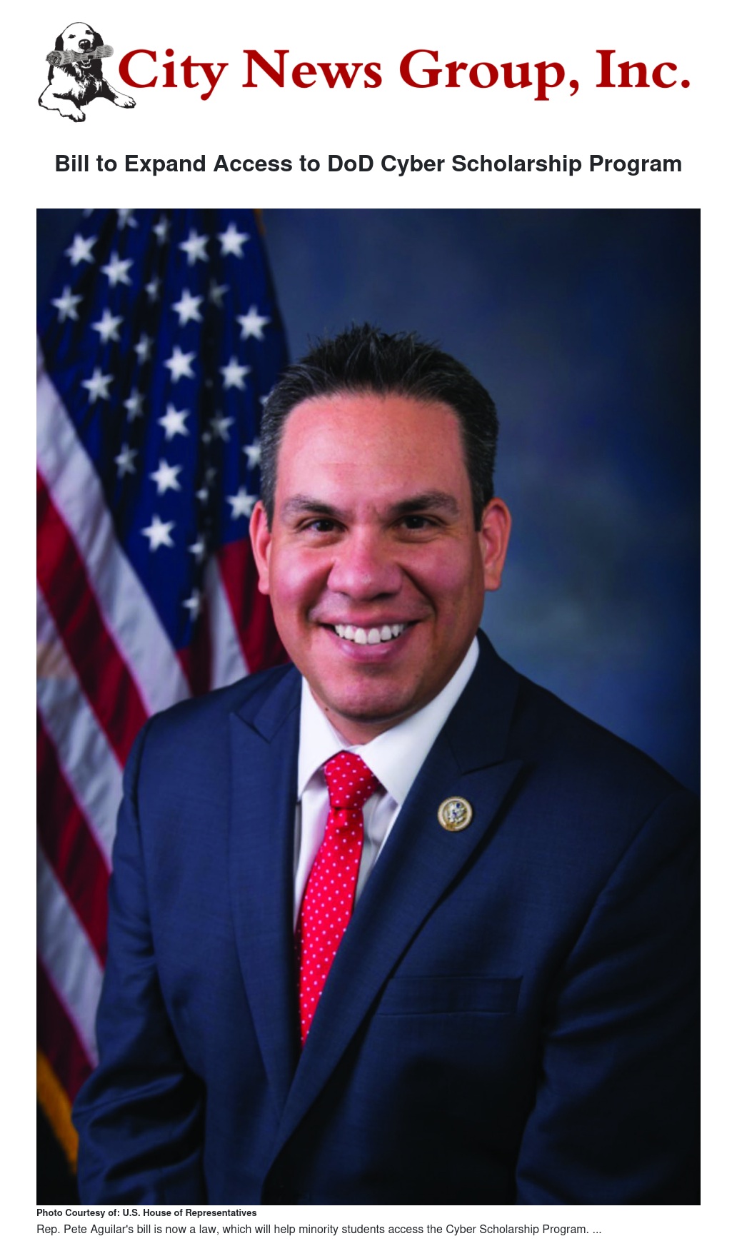 “We know that cyber threats to our national security are ongoing, and we need to make sure that we have the most highly qualified cyber defense force anywhere in the world. I’m proud that my bill was signed into law because it will make sure that communities where these types of opportunities haven’t traditionally been available will not be overlooked as the Department of Defense builds the next generation of our nation’s cyber defense experts,” said Rep. Aguilar.