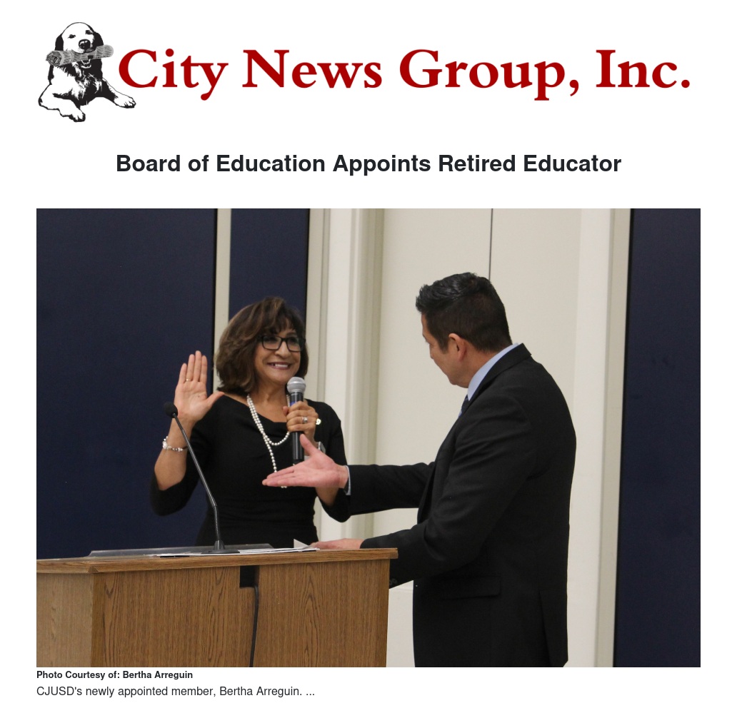 The Colton Joint Unified School District Board of Education appointed Bertha Arreguin as its newest member during a special meeting last Thursday evening.