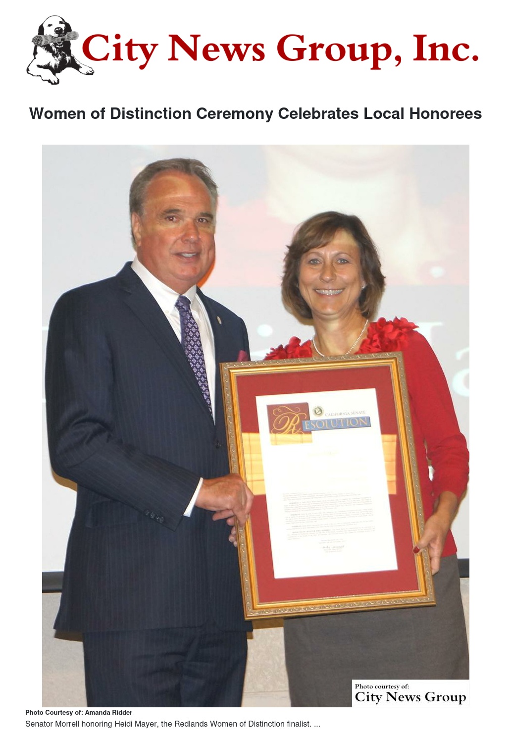 Forty-four Inland Empire women from the 23rd State Senate District were honored for their community work and service by state Sen. Mike Morrell, R-Rancho Cucamonga, in the 11th Annual Women of Distinction Ceremony and Dinner held Oct. 16 in the Orton Center at the University of Redlands.