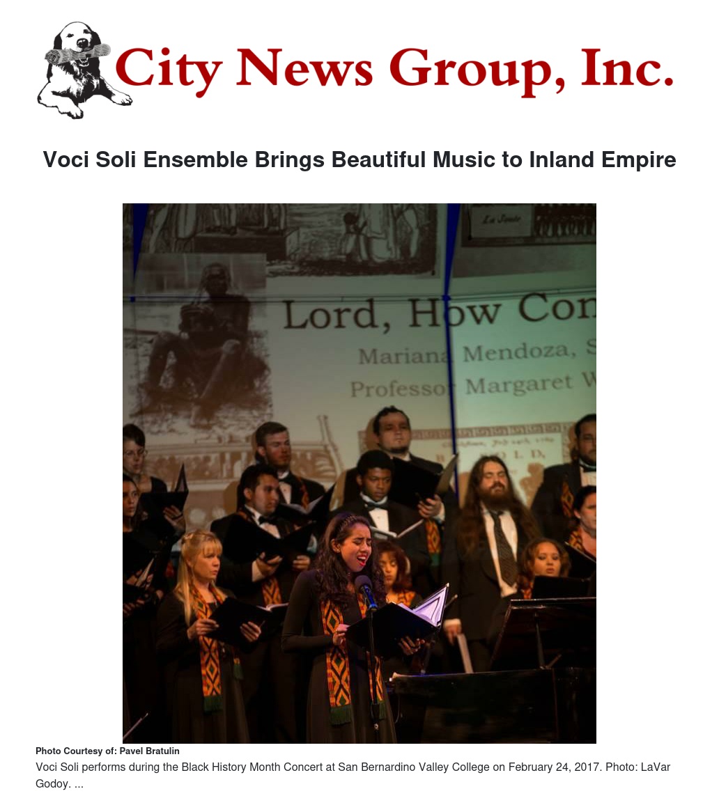 Voci Soli performed during the Black History Month Concert at San Bernardino Valley College on February 24, 2017. Photo: LaVar Godoy.