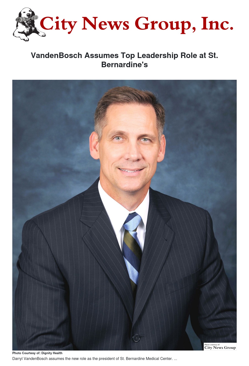 Dignity Health, the parent company of St. Bernardine Medical Center, and the hospital's Community Board on Feb. 5 announced the appointment of Darryl VandenBosch as the medical center's newest president.