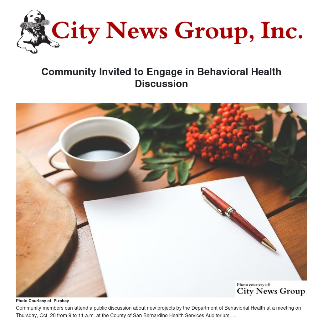 SAN BERNARDINO>> The Department of Behavioral Health invites community members to engage in an interactive public discussion on how new innovation projects, designed to test new practices and/or approaches in the field of behavioral health, can best meet local behavioral health needs.