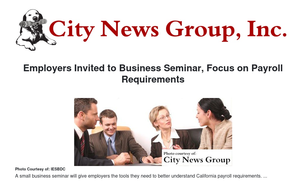The seminar will take place on Wednesday, Sept. 16 and will include an overview of California payroll reporting requirements for independent contractors and employees, according to a release issued by the IESBDC.