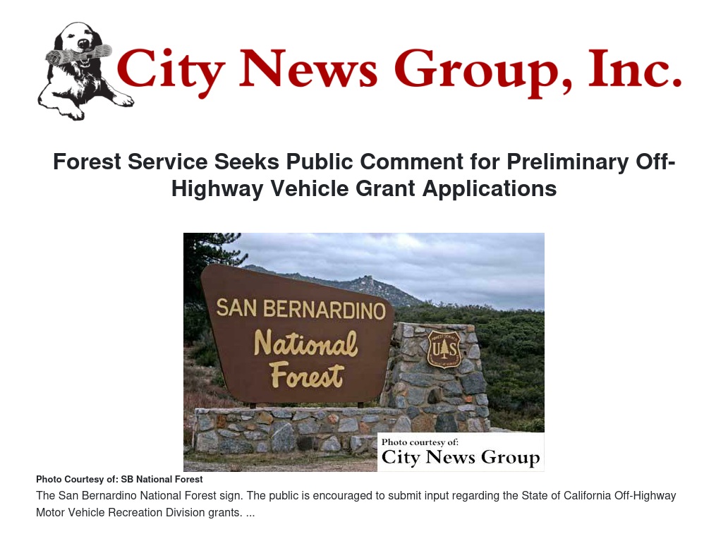 SAN BERNARDINO>> The San Bernardino National Forest will be seeking public input for their upcoming State of California Off-Highway Motor Vehicle Recreation Division grants that will be submitted on March 6, 2017.