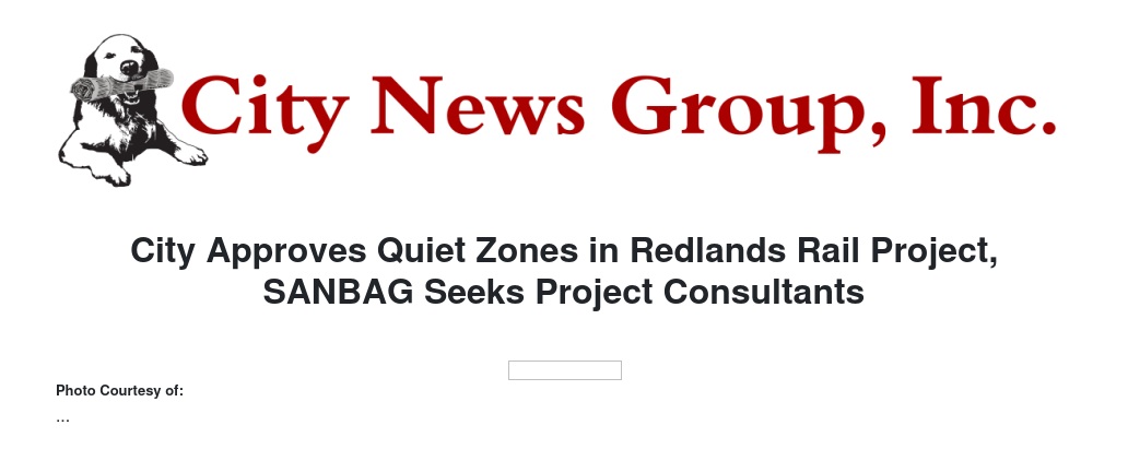 City Approves Quiet Zones in Redlands Rail Project, SANBAG Seeks Project Consultants