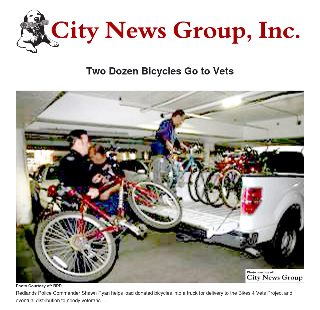 For more information about Redlands Police or the Bikes 4 Vets project, please find this article at www.redlandscitynews.com