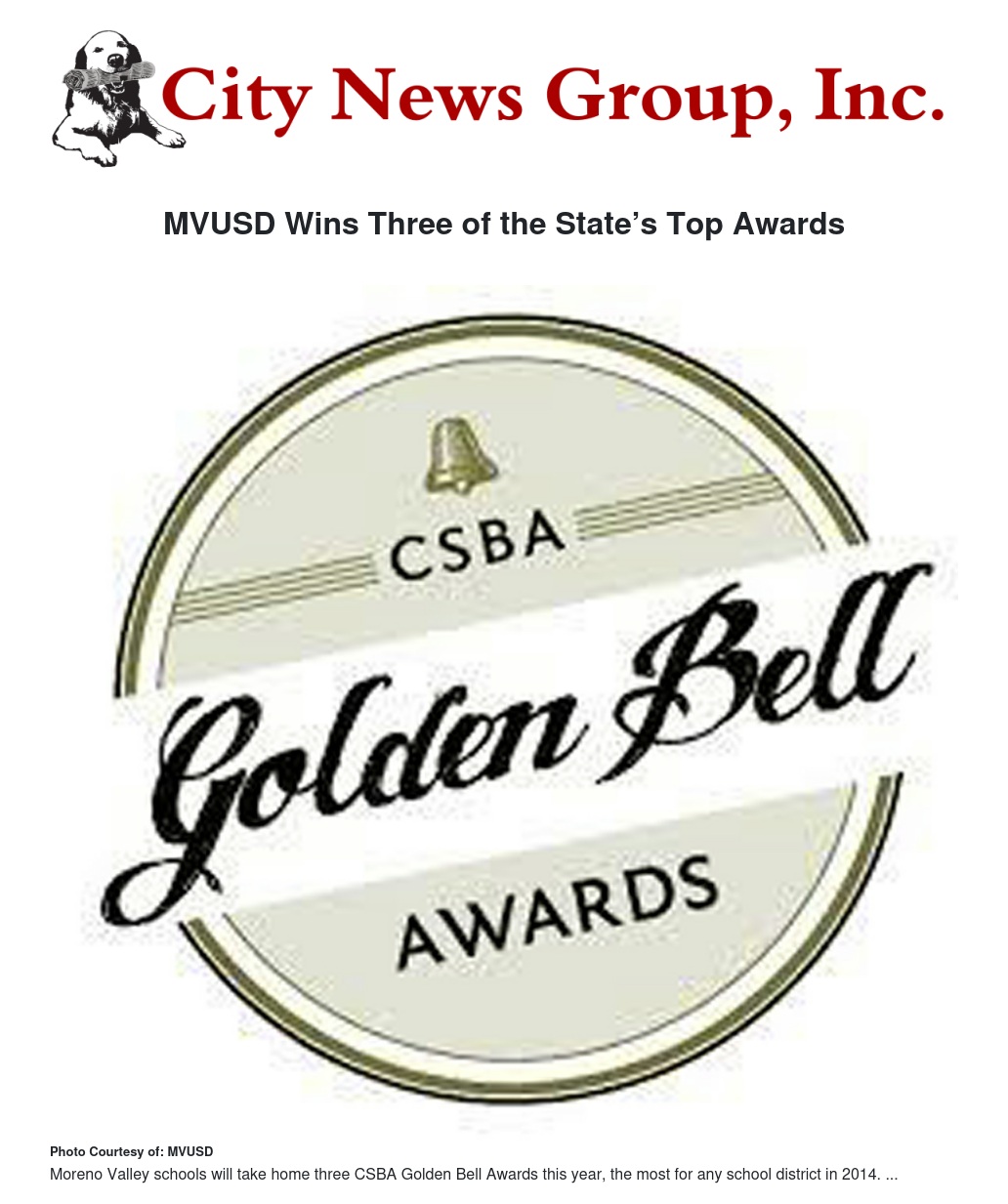 Moreno Valley Unified School District (MVUSD) is being honored with three of the state’s most prestigious award for excellence in education, the Golden Bell, the most presented to any school district in California this year.