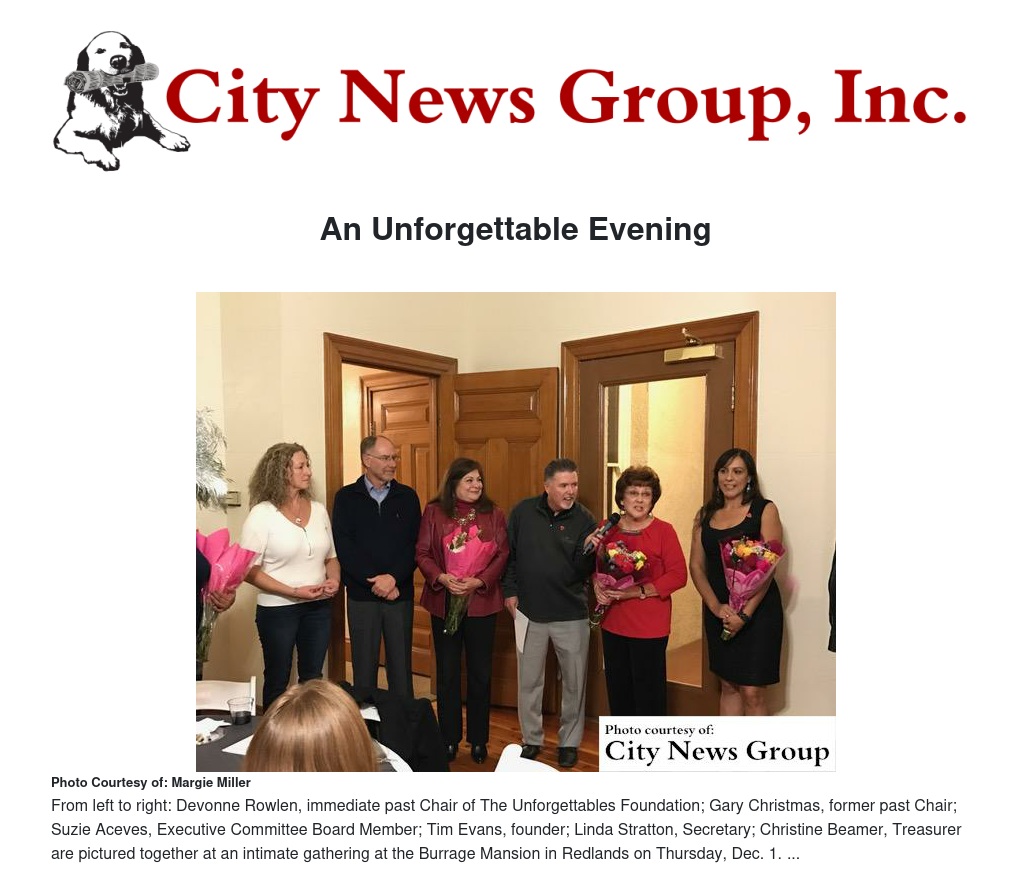 The Unforgettables is expanding into other geographic areas and if you would like more information about the foundation, please contact the office at (909) 335-1600.
