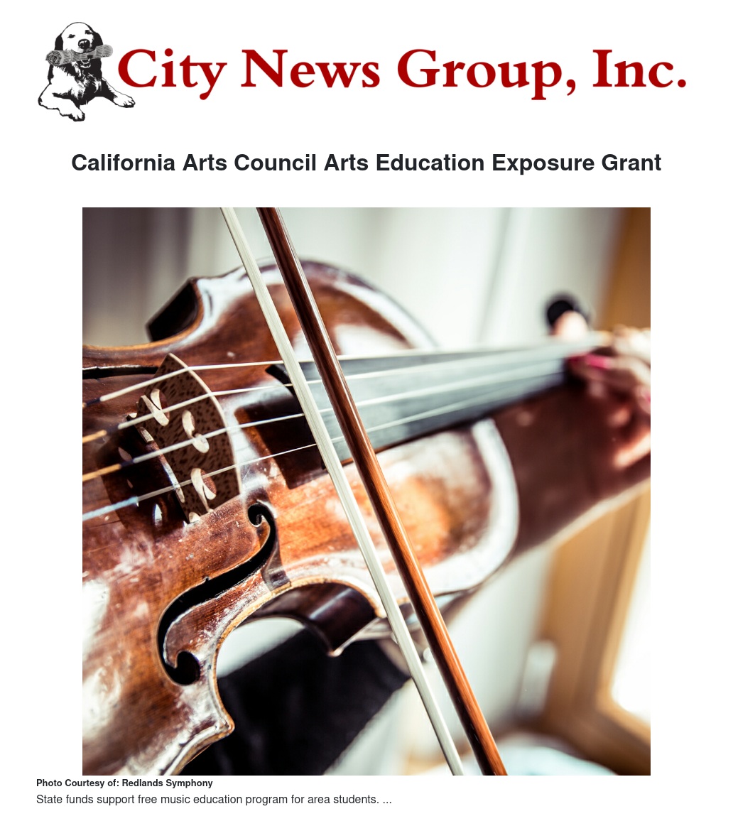 California Arts Council announced a grant award of $20,000 to Redlands Symphony as part of its Arts Education Exposure program.