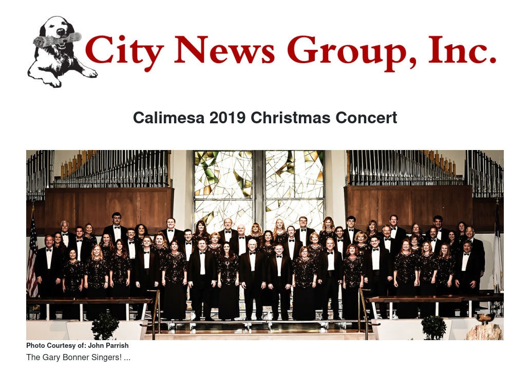 Tickets for the Christmas concerts presented annually by Calimesa Community Concerts are now for sale online, according to the sponsors. The Gary Bonner Singers and Orchestra will be featured in performances at the Calimesa Seventh-day Adventist Church on Dec. 20 and 21.